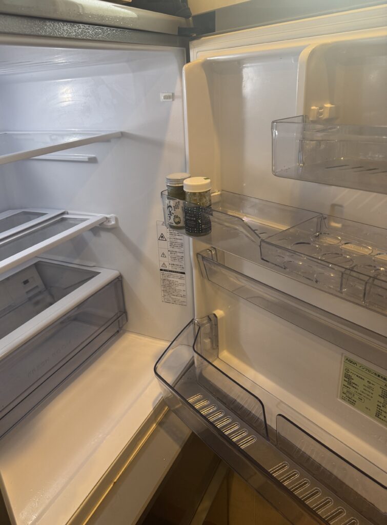 写真は撮ってないけれど、冷凍庫も全部整理しました。あまり冷凍品は多くないのですが、コーヒーの粉のかすとか、きな粉とか、グリーンピースとかが散らばっていて汚かったので、全部こちらも出して、引き出しをお風呂で洗って。