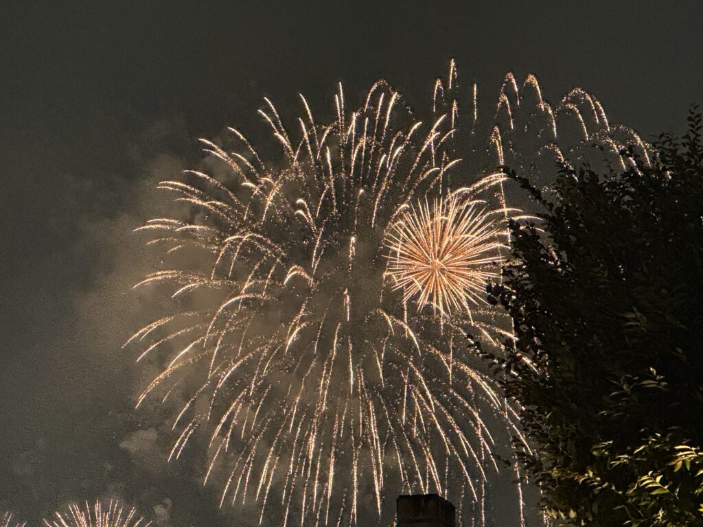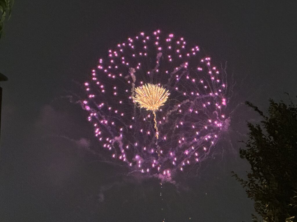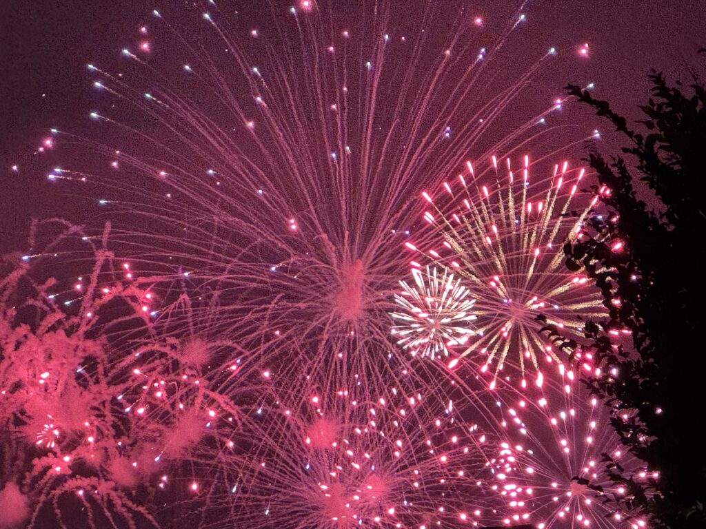 あいにくのお天気でしたが、なんとか雨は止んでくれました。最初雲がかかって一部花火が見えなくなってしまっていましたが、最後には綺麗に見えるようになっていました。
